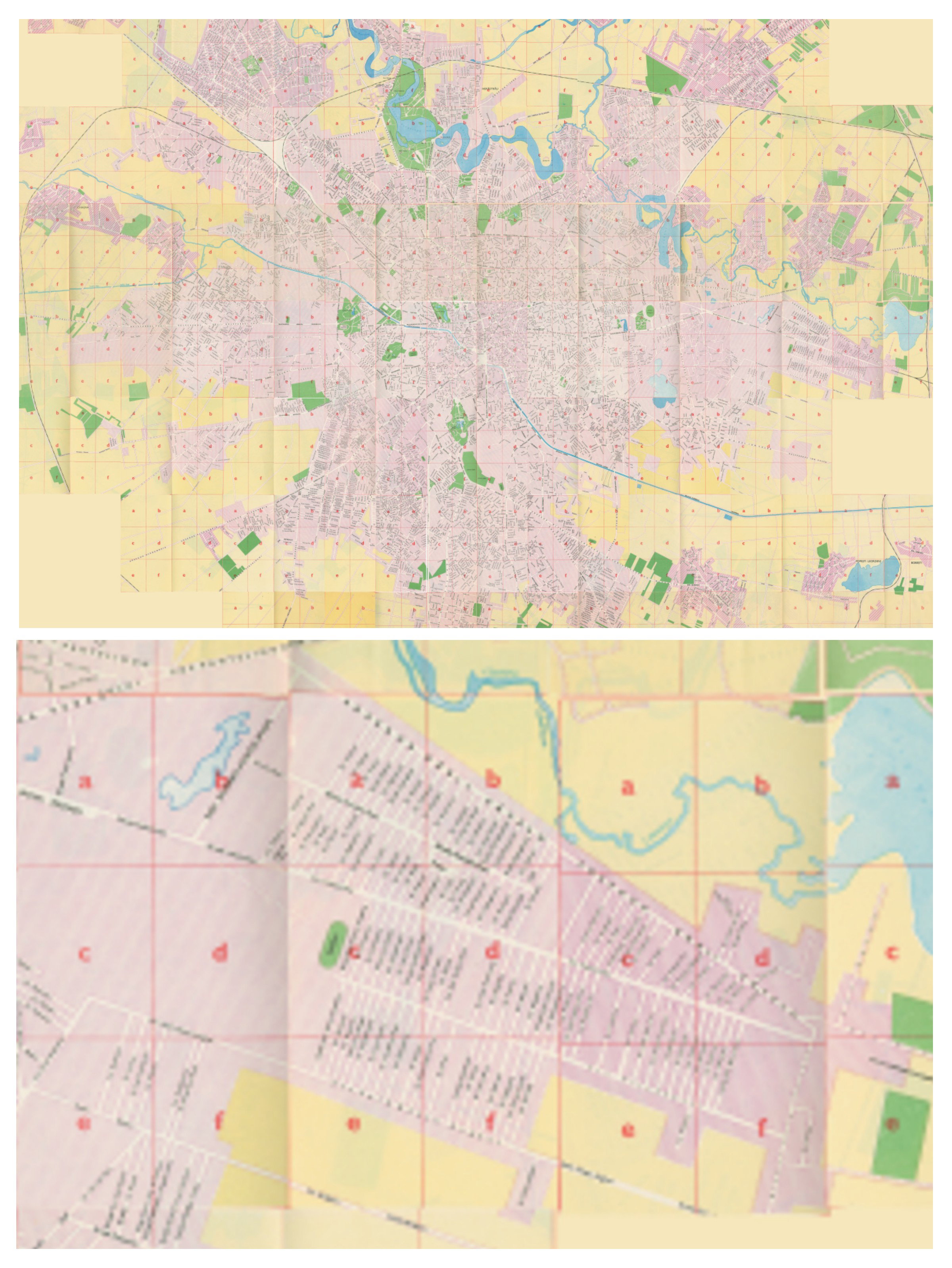 Sus: harta Bucureștiului din 1968; jos: cartierul Malaxa–23 August // Top: the map of Bucharest from 1968; bottom: the Malaxa–23 August neighborhood
