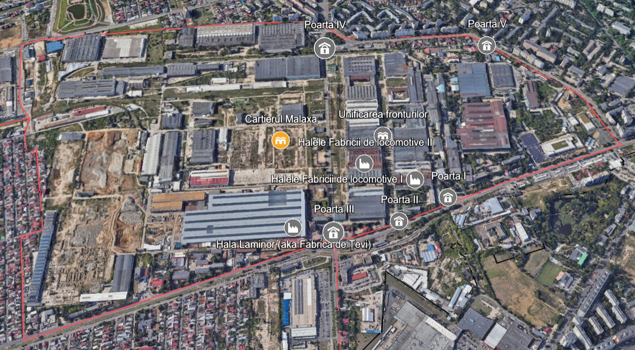 The first halls, belonging to the Malaxa Locomotive Factory, were designed by architect N. Petculescu and completed in 1928. The rapid and rather chaotic development of the site made it necessary to integrate the first mechanical workshops into a coherent complex and to unify the street fronts, while also expanding the ensemble through the addition of several modular halls that made this unification possible. This process, as well as the construction of later landmarks — some now lost, such as the entrance gates; some adapted, such as many of the halls and annexes, including office buildings, laboratories, and restaurants; and some restored, such as Hala Laminor — is associated with the architect Horia Creangă, nephew of the great writer Ion Creangă.