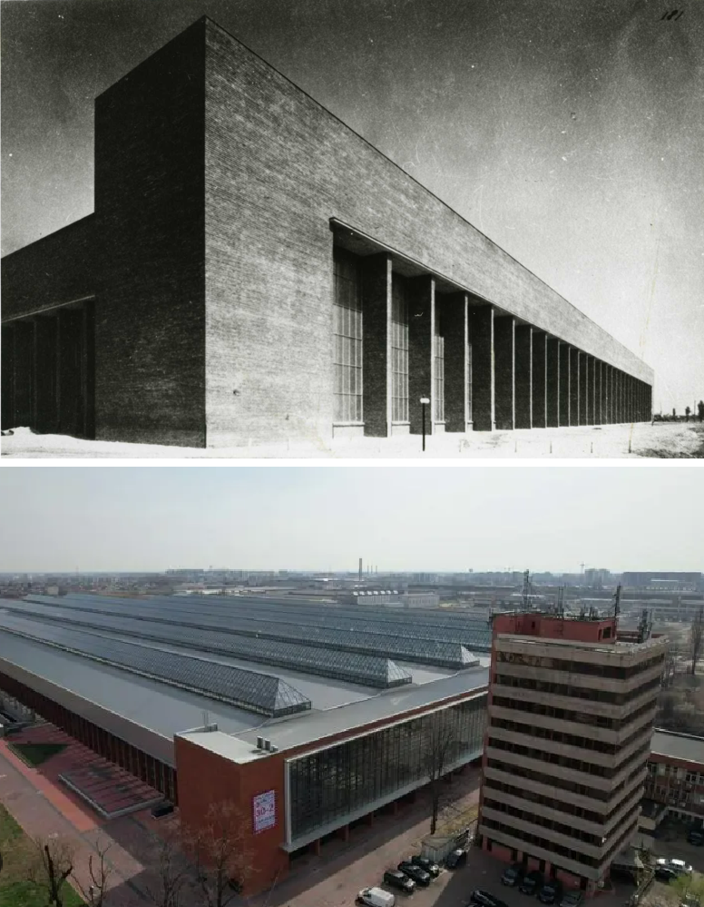 Before reaching the original halls, what immediately catches the eye are the unified fronts, Horia Creangă’s essential contribution to organizing the Malaxa ensemble. If the first halls had been built in stages, according to immediate technological needs, Creangă later integrated them into a coherent composition by standardizing the main and rear façades. The halls, joined along their long sides and arranged in parallel rows, were brought to a common visual language through the continuous rhythm of the fronts, marked by exposed brick piers, large glazed surfaces, and a repetitive cadence that avoided monotony and gave the ensemble a sense of monumentality.