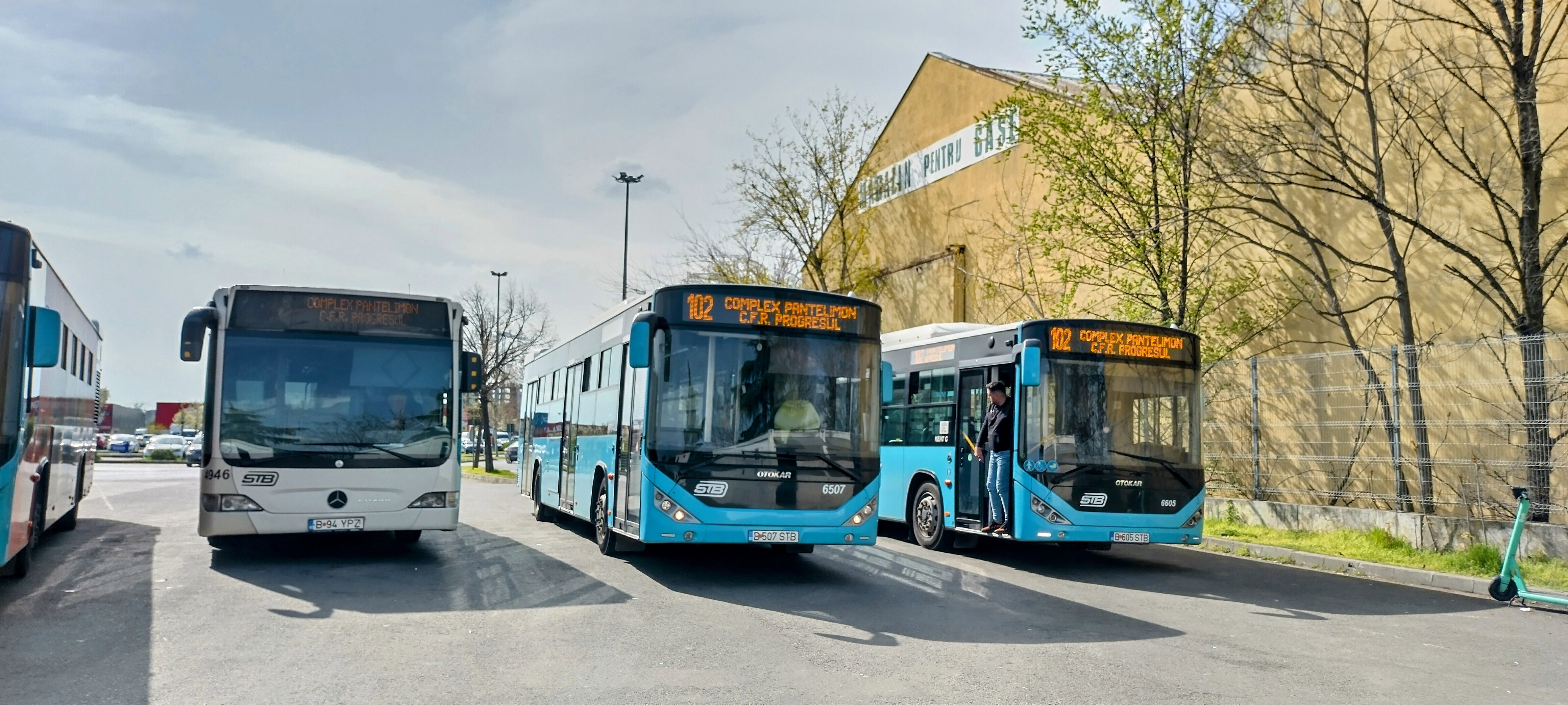 We did not come by metro, however, but by bus 102, which terminates at Complexul Pantelimon, in the courtyard of the shopping center — formerly Cora, now Carrefour, sold to the Dedeman brothers. Several buses turn around in this area, and one intersection further back, where Bulevardul Basarabia meets Șoseaua Industriilor — or, more precisely, between Titan Sud halt and Hala Laminor — all the trams that reach this point also turn around. At the moment, the line is under reconstruction.