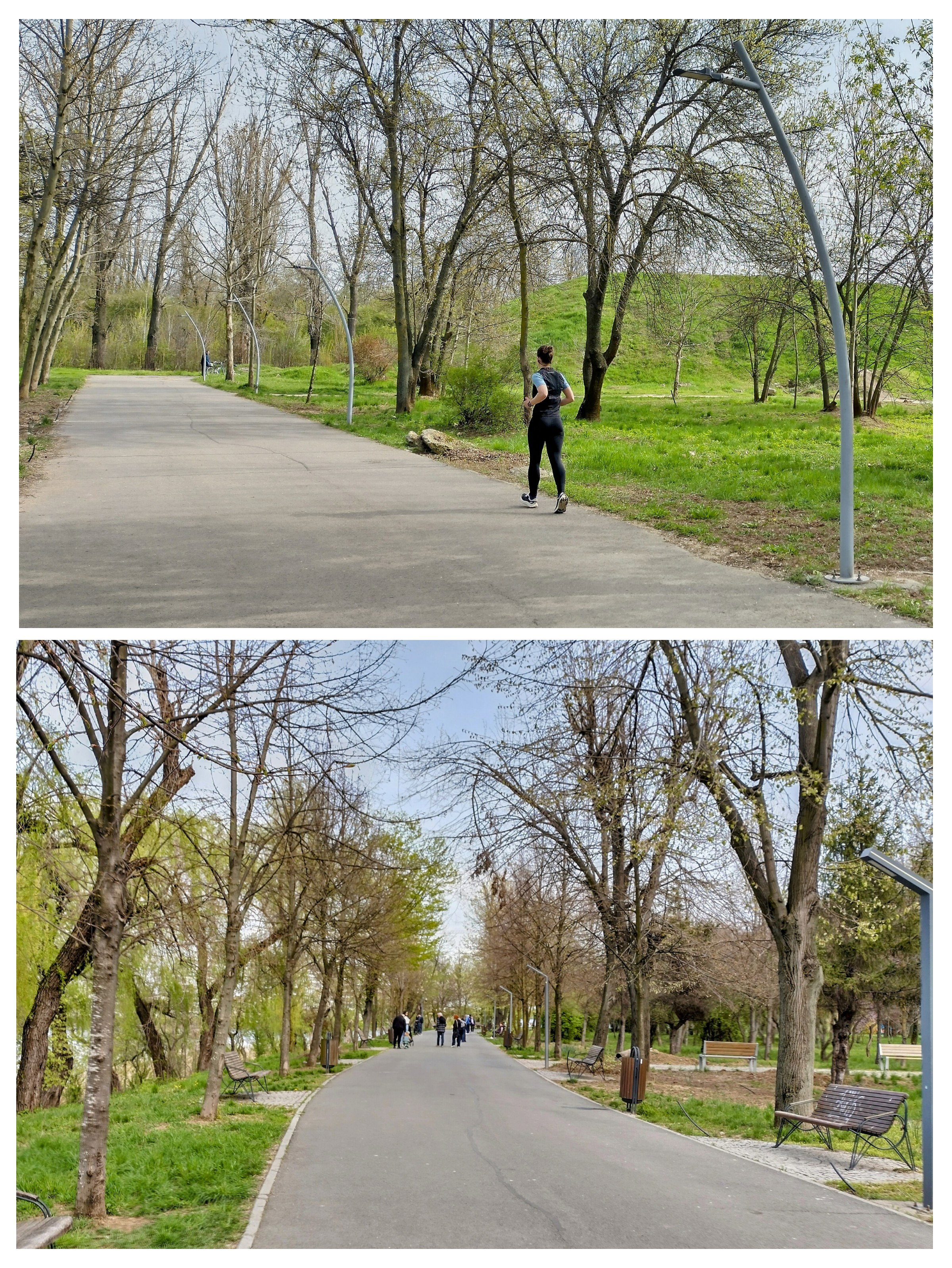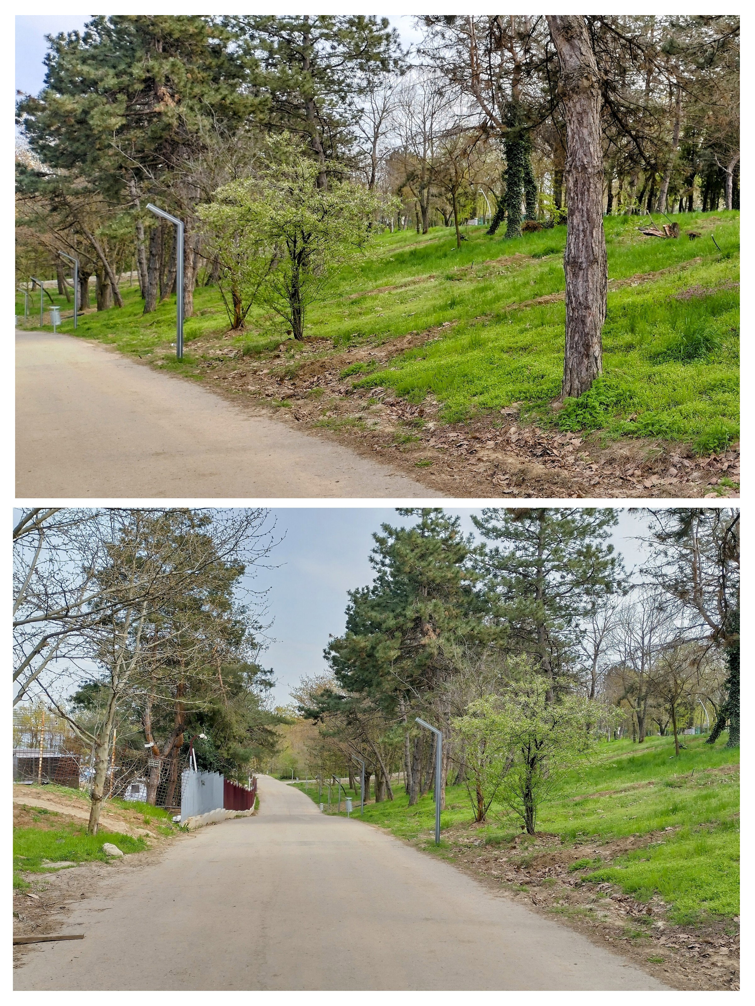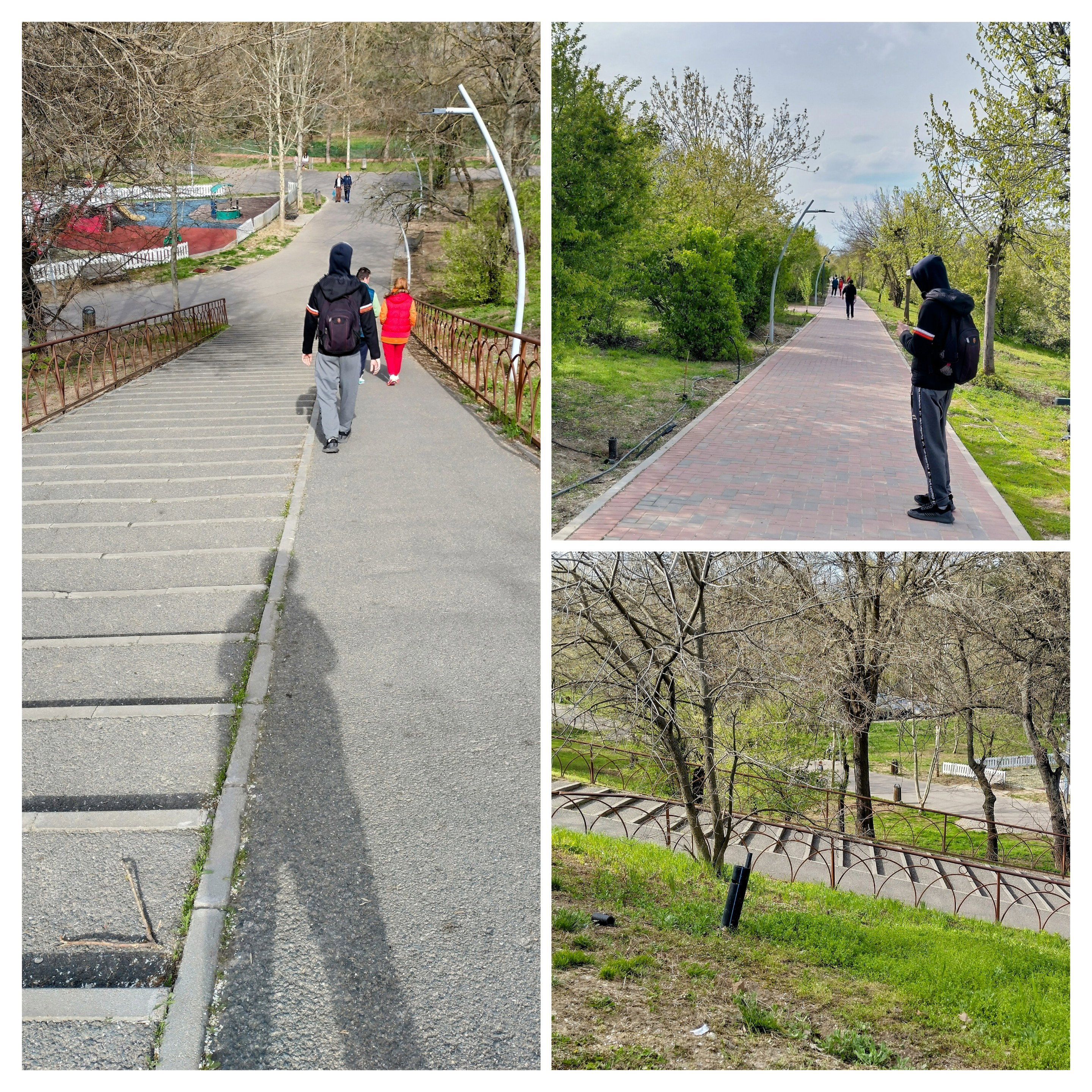 Noi, evident, după câțiva pași printre gunoaie, nu am continuat, ci ne-am întors prin parc, pe care l-am abordat de această dată pe aleea de sus.