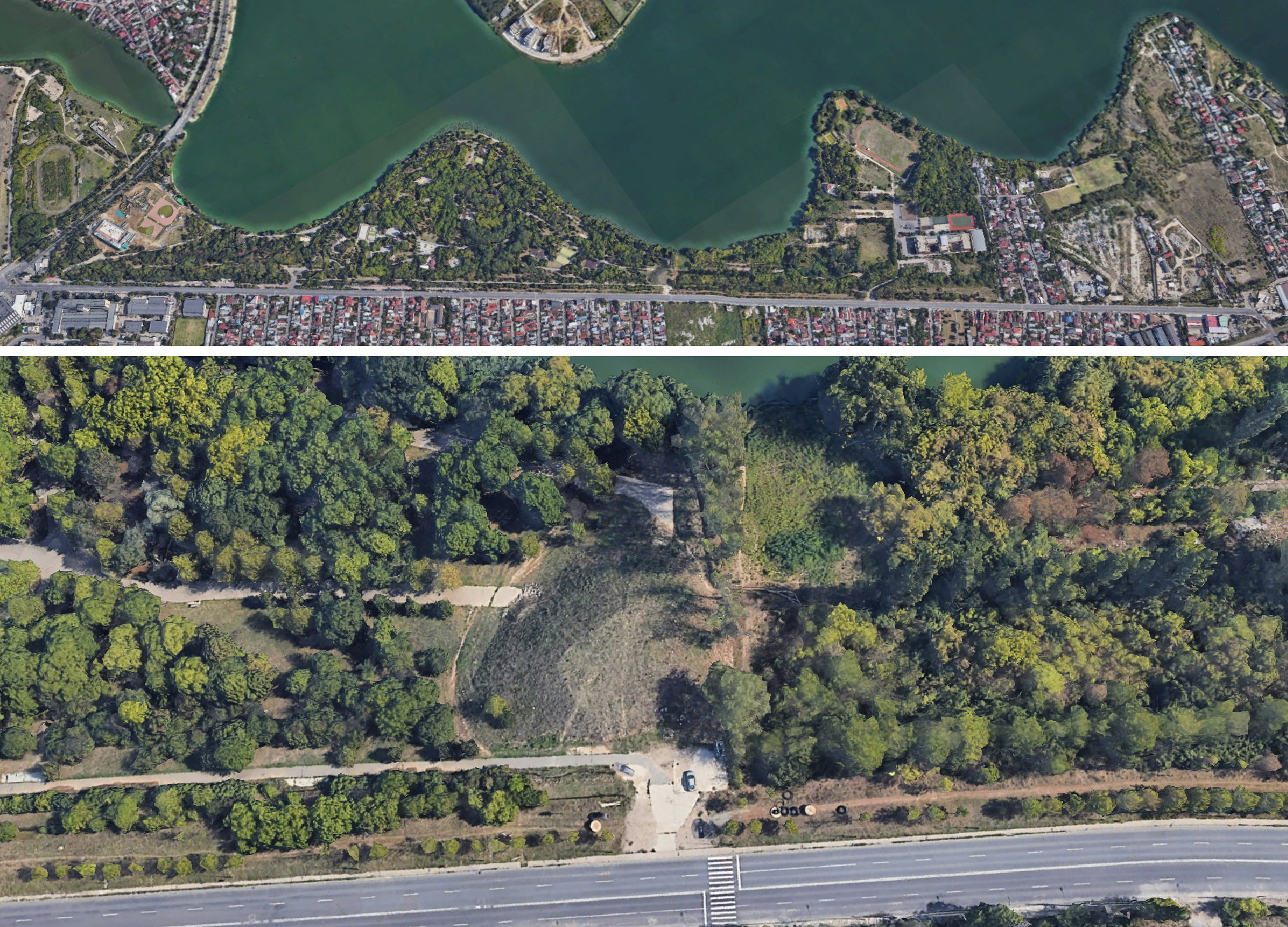 About half of the lakeside area running alongside Șoseaua Gării Cățelu belongs to Pantelimon Park; the other half passes, somewhat illegally, through a wooded area frequented by fishermen and people having barbecues who, unfortunately, also leave rubbish behind. Beyond this area, at the northeastern end, are the Firefighters’ Training Centre, International School of Bucharest and a sports complex. The boundary between the two halves is marked by this hill.